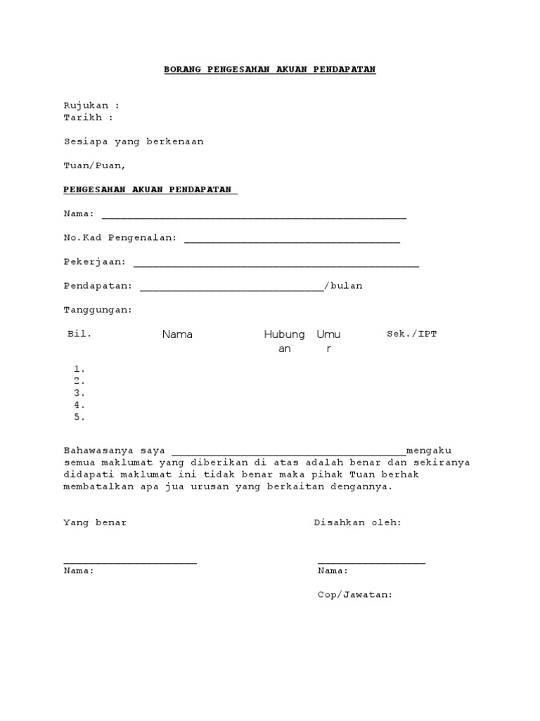 Contoh Borang Pengesahan Akuan Pendapatan Pdf